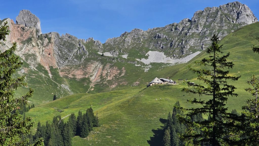 Dimanche + 780m / – 1100m sur 14.5km autour des Gastlosen sans le col du loup mais un arrêt tarte et bière au chalet du Soldat