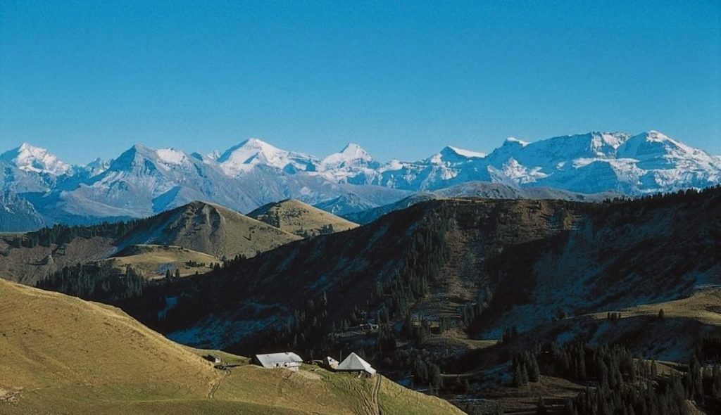 Nuit en dortoirs dans la Grubenberghütte avec vue panoramique sur la chaîne des Aples Bernoises, dent de Ruth et Zuckerspitz